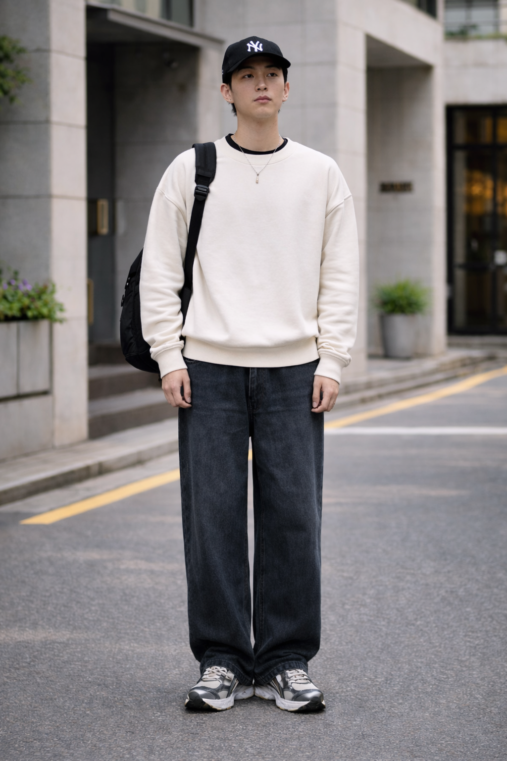 12oz: 높은 밀도의 탄탄한 원단, 안정적인 실루엣 연출, 우수한 핏 유지력